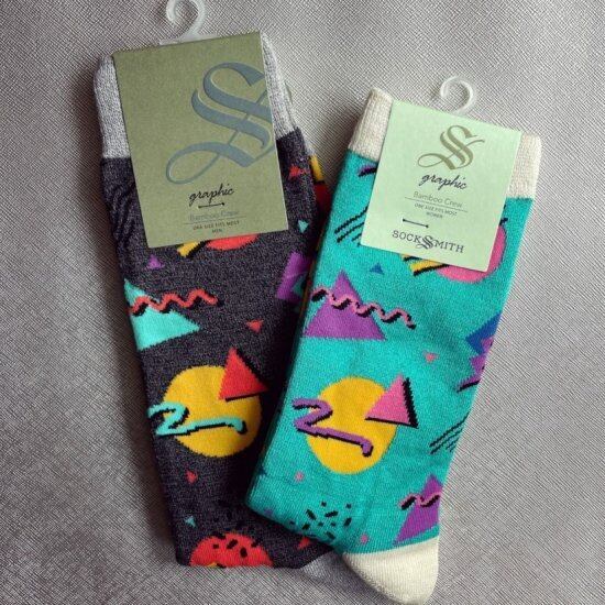90年代を彷彿とさせるレトロなデザインと色使いのソックス。